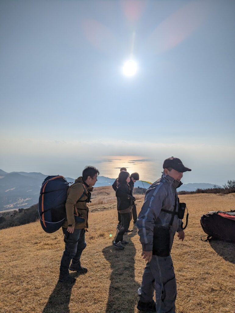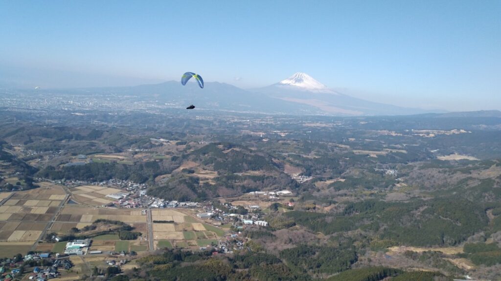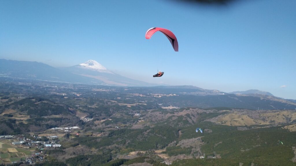 3日目最終日は伊豆半島付け根の函南にある「丹那エリア」管理スクールイクスパラグライダースクール。早めにスタートから2本目にはリッジも楽しめ、トップアウトしたメンバーたちは駿河湾と相模湾と富士山を一望できる絶景を楽しみました。