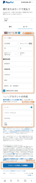 ④ 決済アカウント作成のため、初回のみ必要事項の入力をお願いします。