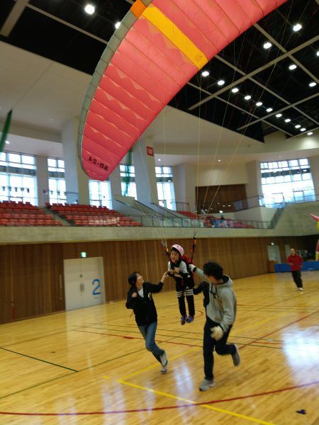 お客様の近くの体育館などに出張し、屋内でのパラグライダー体験を実施いたします。
